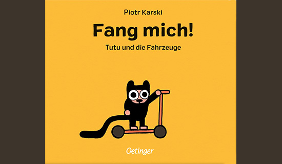 Tutu sieht etwas Merkwürdiges. „Ha! Gleich hab ich dich!“ So beginnt ein rasantes Fangspiel, bei dem Tutu auf jeder Seite das Fortbewegungsmittel wechselt. Mit Roller, Bus oder Traktor, mit Flugzeug, Kajak oder Schlitten geht es über die Berge, durch die Wolken oder den Fluss hinab. Bis er sogar den Mond erreicht! Aber was hat er da nun gefangen? Ein Fahrzeugbuch in Pappe, das zum Entdecken, Lachen und Mitfiebern einlädt.